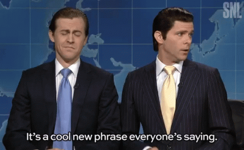 Mikey Day and Alex Moffatt as Eric Trump and Donald Trump Jr on SNL's Weekend Update, discussing a cool new phrase.