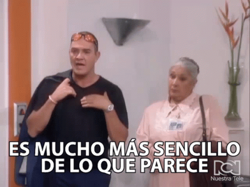 A man explains to a woman in a scene from Yo Soy Betty La Fea, saying 'It's much simpler than it seems.'