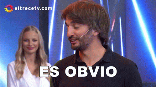 A man in a black shirt declares 'Es Obvio' during a segment on the Argentine TV show Bienvenidos A Bordo.