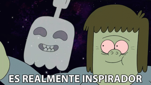 Muscle Man and Hi Five Ghost from Regular Show share an inspiring moment, with Muscle Man saying "Es Realmente Inspirador".