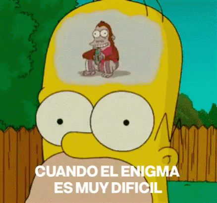 Homer Simpson struggles with a difficult enigma, featuring a monkey in his head, leading to an Escape Games logo.