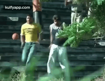 Siddique and another man run from police in a scene from the Malayalam film Chotta Mumbai, attempting to escape.