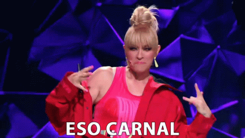 Yuri, the Mexican singer, gestures energetically with the phrase 'Eso Carnal' displayed on screen.