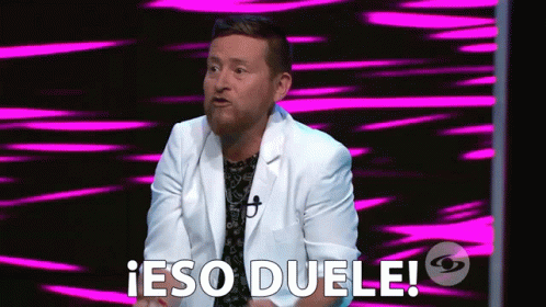 Chester, a man in a white jacket, exclaims '¡Eso Duele!' (That Hurts!) with a frustrated expression.