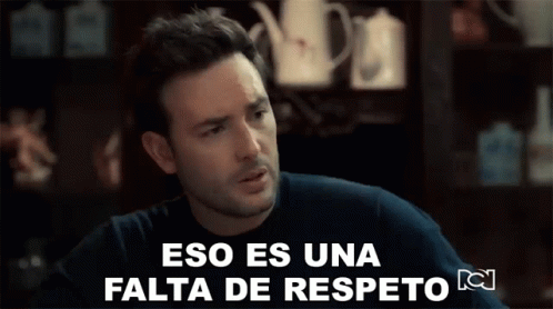 Mauricio, played by Sebastian Martinez, exclaims '¡Eso Es Una Falta De Respeto!' in a scene from Pa Quererte.