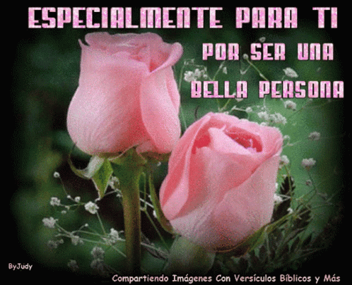 Two pink roses with the message 'Especialmente Para Ti Por Ser Una Bella Persona' (Especially For You For Being A Beautiful Person).