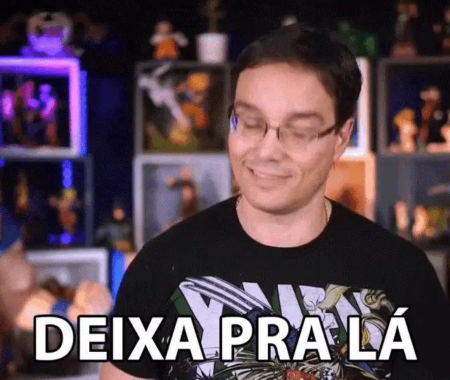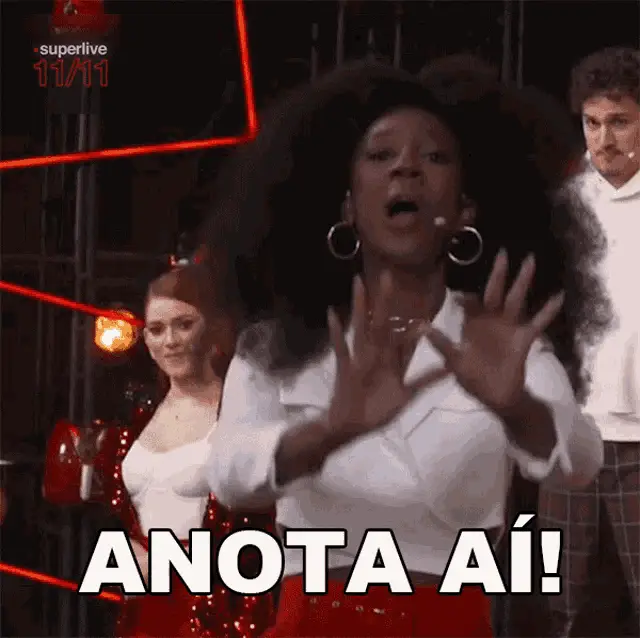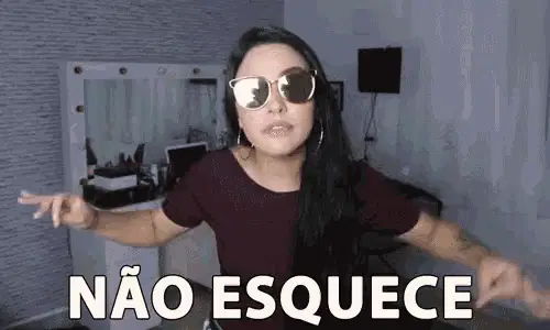 Letícia Wexell, with red hair, smiles and gestures 'forget it' with the Portuguese caption 'ESQUECE'.