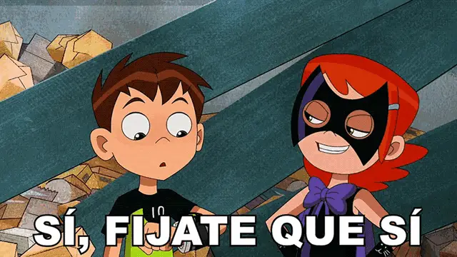 Gwen from Total DramaRama is upside down and smiling, with the caption 'ESTÁ BIEN'.