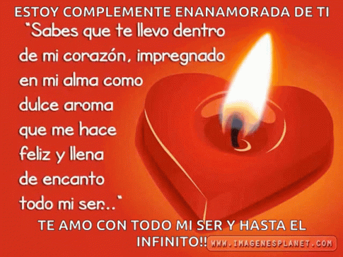 A heartfelt Spanish love message with a burning heart-shaped candle, expressing complete love and devotion.
