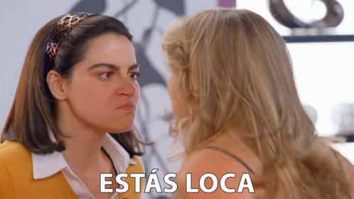 Ingrid Martz and Maite Perroni in a heated argument, with 'Estás Loca' visible on screen.