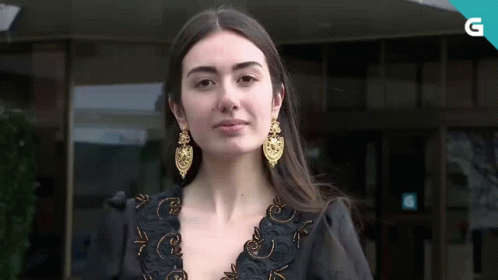 Esther Estevez from Digocho Eu, wearing a black top with gold embroidery and large gold earrings, smiling for the camera.