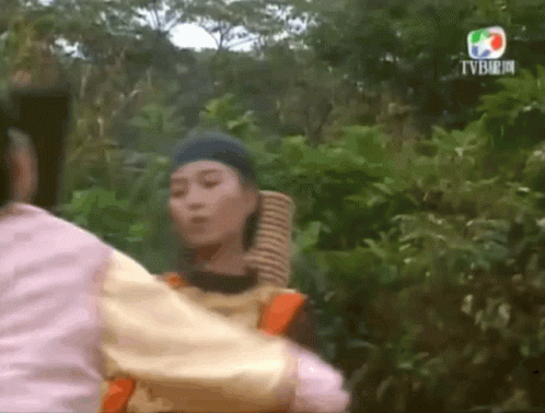 Esther Kwan (Quan Vịnh Hà) in traditional attire, catching another woman and asking if she's alright.