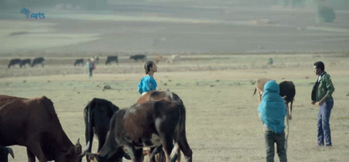 Ethio Love Ethio Sayat: A man and woman run across a vast field with grazing cattle in Ethiopia.