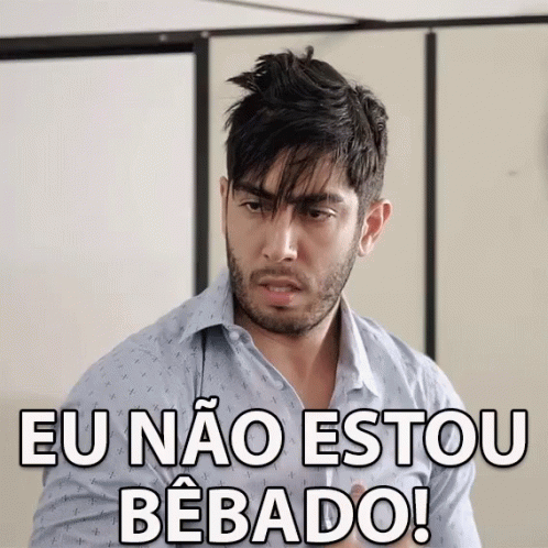 A man with a beard and messy hair emphatically states 'I am not drunk!' while looking concerned.