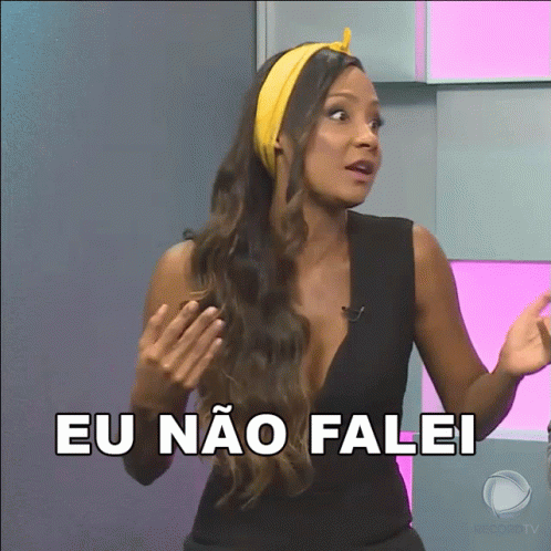 A woman in a black dress emphatically states 'Eu Não Falei' (I Didn't Say It) on Power Couple Brasil.