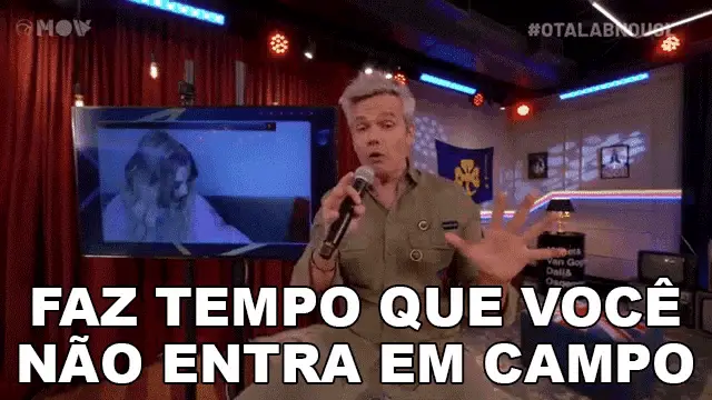 Mario Jr expresses nervousness to Otaviano Costa during an Otalab interview, saying 'Eu tô nervoso, gente, pára!'