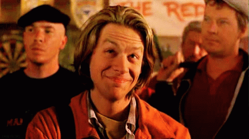 Scott Thomas from Eurotrip smiles knowingly, with friends in the background.