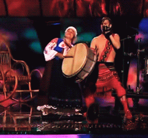 Zdob Si Zdub performs 'Boonika Bate Doba' at Eurovision 2005, featuring a woman drumming and a man singing.