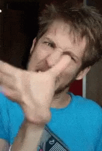 Evanedinger shows a panicked facial expression, reacting with wide eyes and an open mouth in distress.