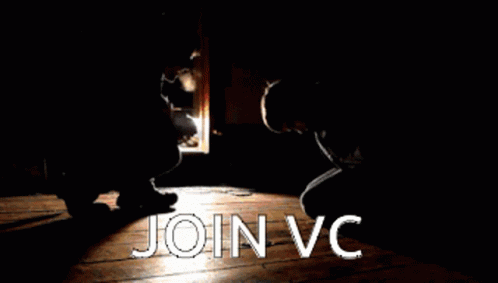 Two silhouetted figures kneel in a dark room with the text 'JOIN VC' displayed, referencing Everymanhybrid and Mlandersen0.