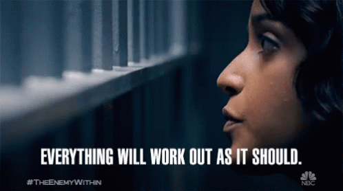 A woman behind bars looks out, with the reassuring message 'Everything Will Work Out As It Should' from The Enemy Within.