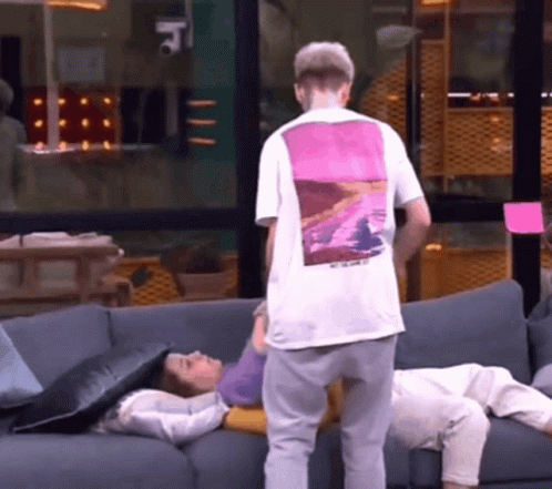 Hugo Ot helps Eva Ot get up from the couch, a sweet moment between the two.