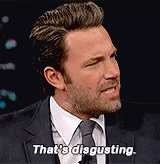 Ben Affleck reacts with a disgusted expression, saying 'That's disgusting' during an interview.