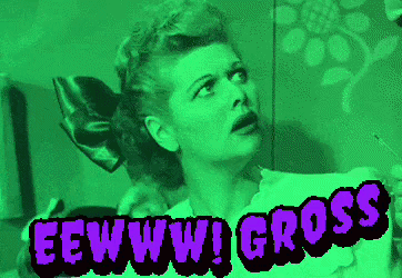 A woman reacts with disgust, exclaiming 'Ewww! Gross!' as text appears on screen.