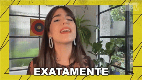 Bia Coelho emphatically says 'Exatamente' with a smile, making a point directly to the camera.