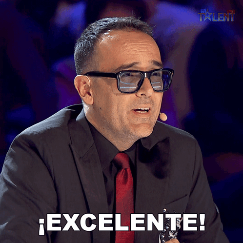 Risto Mejide, a judge on Got Talent España, enthusiastically exclaims '¡Excelente!' (Excellent!) during a show.