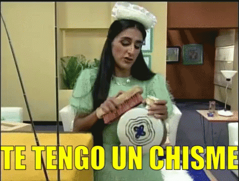 Excelsa from La Familia Peluche, holding a brush and sharing some juicy gossip.
