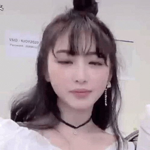K-pop idol shows a confused 'excuse me' reaction, perfect for a meme. Features a bun hairstyle and choker.