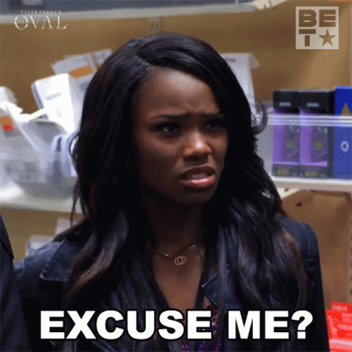 Sharon Welles reacts with a confused "Excuse Me?" expression in a scene from BET's The Oval.