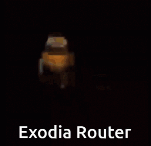 A pixelated animation featuring the 'Exodia Router' character in a chaotic melee scene.