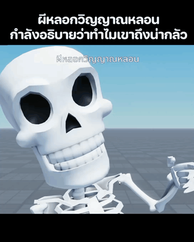 A 3D animated skeleton explains why he is scary, referencing a popular meme format.