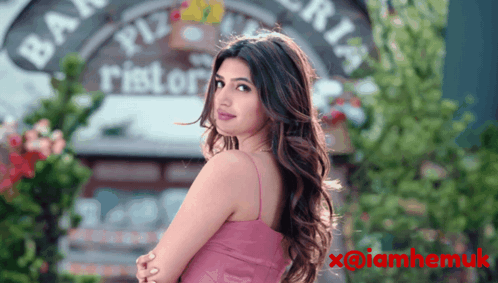 Sree Leela from 'Extra Ordinary Man' winks playfully while looking back, wearing a stylish pink dress.