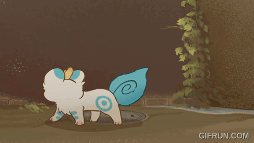An animated Pixiu from Fabulous Beasts stretches, then gets angry, fluffing its tail.