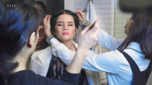 Maren Morris gets her hair styled and makeup touched up backstage, preparing for an event.