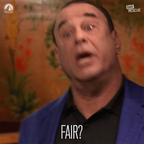 Jon Taffer from Bar Rescue reacts with a questioning 'Fair?' expression.