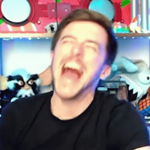 Snapfingerclick (SFC) delivers a comically exaggerated fake laugh, transitioning to a serious expression.