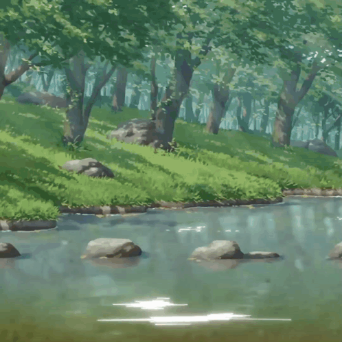 Falin Touden from Delicious in Dungeon, hopping across stepping stones in a river.