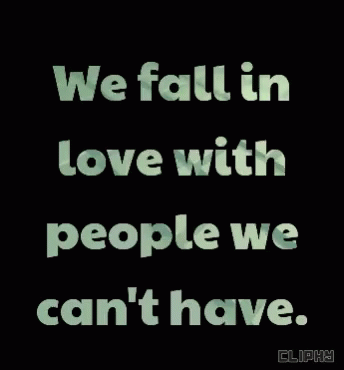 A poignant quote displayed on screen: 'We fall in love with people we can't have.' from CLIPHY.