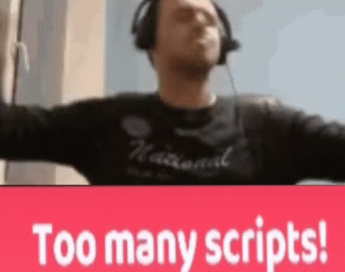Papich reacts to 'Too many scripts!' and 'Scripts: 100%' in a popular Fancade meme.