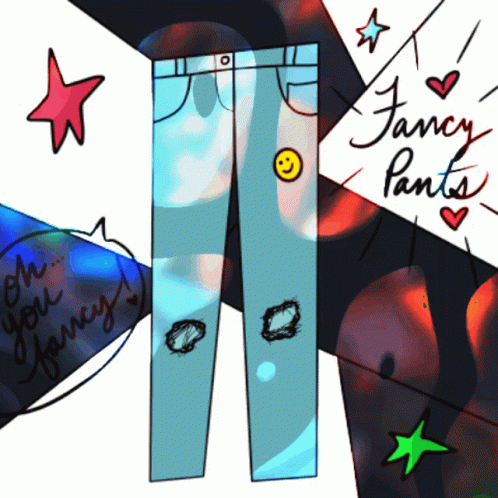 Cartoon drawing of fancy pants with a smiley face, created by Susan Jean Art. Oh You Fancy!
