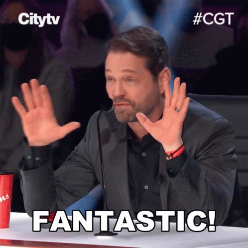 Jason Priestley, a judge on Canada's Got Talent, reacts with enthusiasm, exclaiming 'FANTASTIC!'.