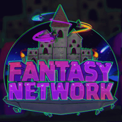 An animated logo for Fantasy Network featuring a magical castle, flying figures, and glowing text.