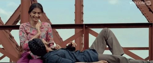 Farhan Akhtar and Sonam Kapoor share a sweet, romantic moment on a bridge, smiling and in love.