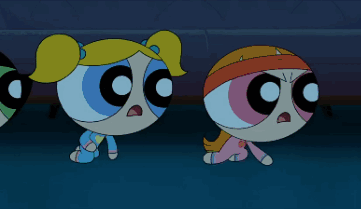Bubbles and Buttercup from The PowerPuff Girls in their pajamas, reacting with surprise and disgust to farts.