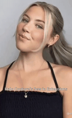 A woman showcases a stunning transformation with Halo Couture's sew-in hair extensions, adding volume and length.