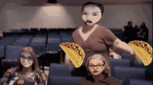 The viral 'Fat Taco Tuesday' meme featuring a woman dancing with tacos in an auditorium.